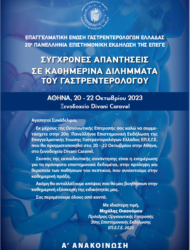 Στο παρακάτω link θα βρείτε τα Videos των ομιλιών από τη 22η επιστημονική εκδήλωση της ΕΠΕΓΕ. https://projector-web.gr/CongressWorld/gr/22i-panellinia-epistimoniki-ekdilosi/welcome Τελικό πρόγραμμα εκδήλωσης : https://www.epege.gr/wp-content/uploads/2025/12/22-EPEGE_programme_2025-1.pdf