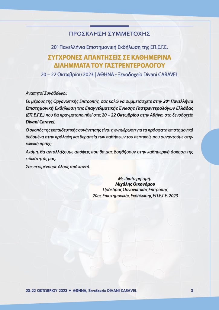 Στο παρακάτω link θα βρείτε τα Videos των ομιλιών από τη 22η επιστημονική εκδήλωση της ΕΠΕΓΕ. https://projector-web.gr/CongressWorld/gr/22i-panellinia-epistimoniki-ekdilosi/welcome Τελικό πρόγραμμα εκδήλωσης : https://www.epege.gr/wp-content/uploads/2025/12/22-EPEGE_programme_2025-1.pdf