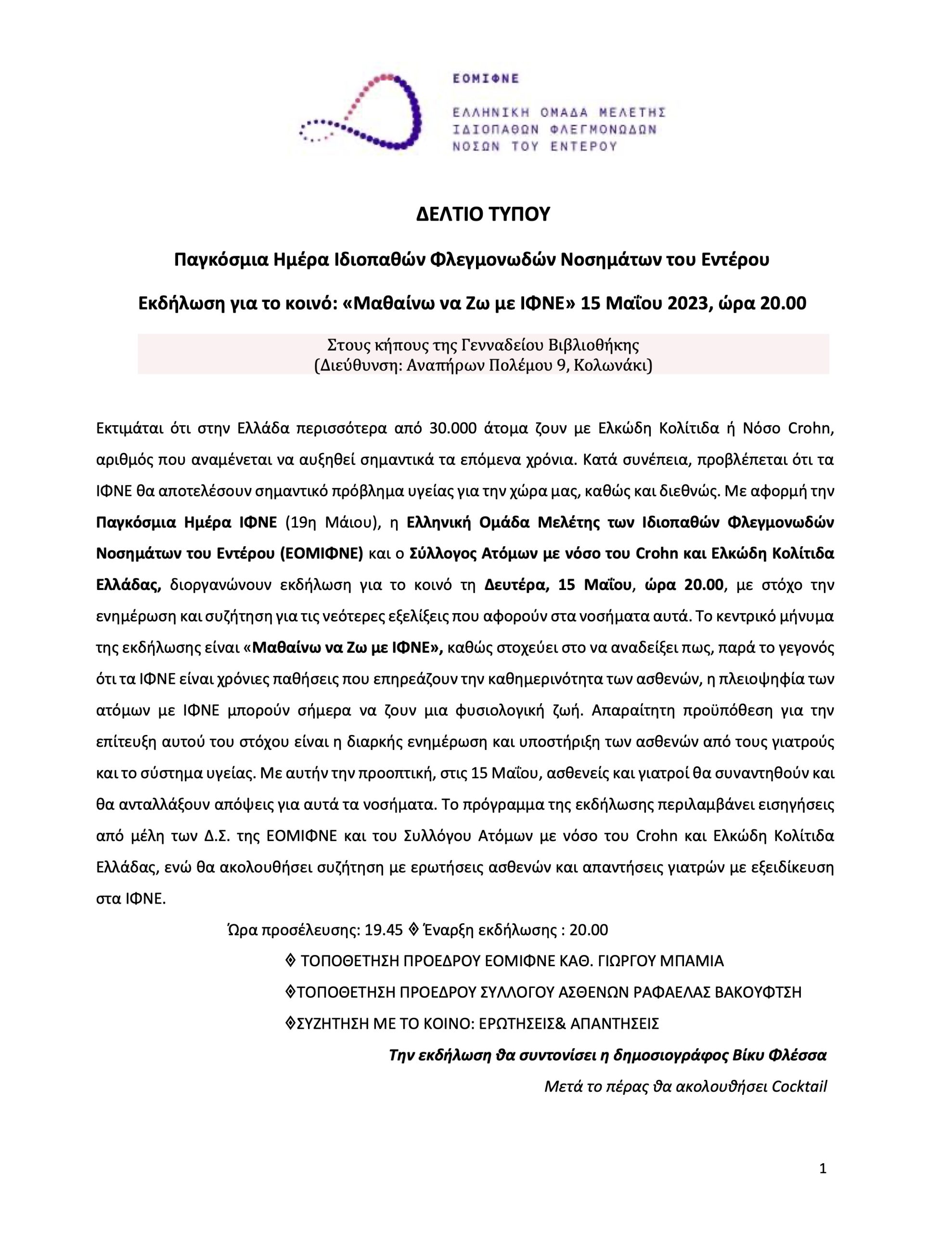 ΑΝΑΚΟΙΝΩΣΗ ΓΙΑ ΤΗΝ 21η ΠΑΝΕΛΛΗΝΙΑ ΕΚΔΗΛΩΣΗ ΕΠΕΓΕΠΡΟΓΡΑΜΜΑ ΕΚΔΗΛΩΣΗΣ 21η ΠΑΝΕΛΛΗΝΙΑ ΕΠΙΣΤΗΜΟΝΙΚΗ ΕΚΔΗΛΩΣΗ ΕΠ.Ε.Γ.Ε. "Σύγχρονες προσεγγίσεις σε νοσήματα οισοφάγου στομάχου" Αγαπητές και Αγαπητοί Συνάδελφοι, Με μεγάλη χαρά, σας προσκαλώ στη 21η Πανελλήνια Επιστημονική Εκδήλωση της Επαγγελματικής Ένωσης Γαστρεντερολόγων Ελλάδας (ΕΠ.Ε.Γ.Ε.) με τίτλο «Σύγχρονες προσεγγίσεις σε νοσήματα οισοφάγου στομάχου», που θα πραγματοποιηθεί στις 4 – 6 Οκτωβρίου […]